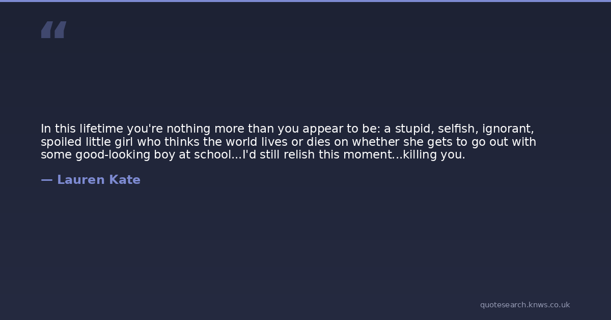 In this lifetime you're nothing more than you appear to be: a stupid, selfish, ignorant, spoiled little girl who thinks the world lives or dies on whether she gets to go out with some good-looking boy at school...I'd still relish this moment...killing you.
