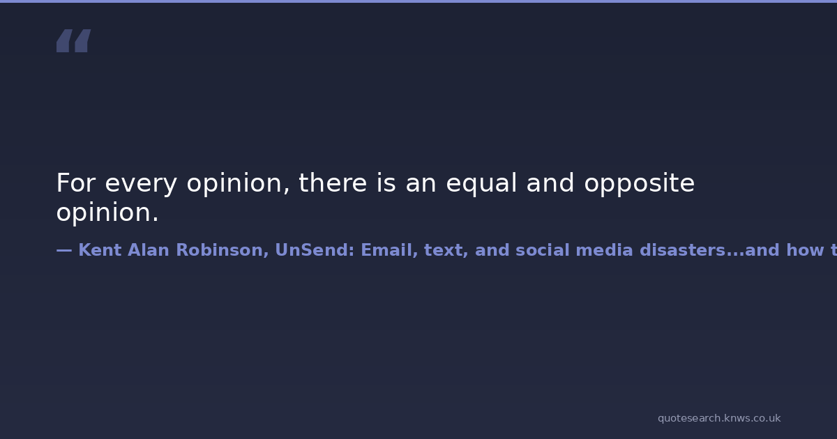 For every opinion, there is an equal and opposite opinion.
