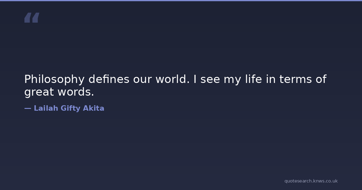 Philosophy defines our world. I see my life in terms of great words.