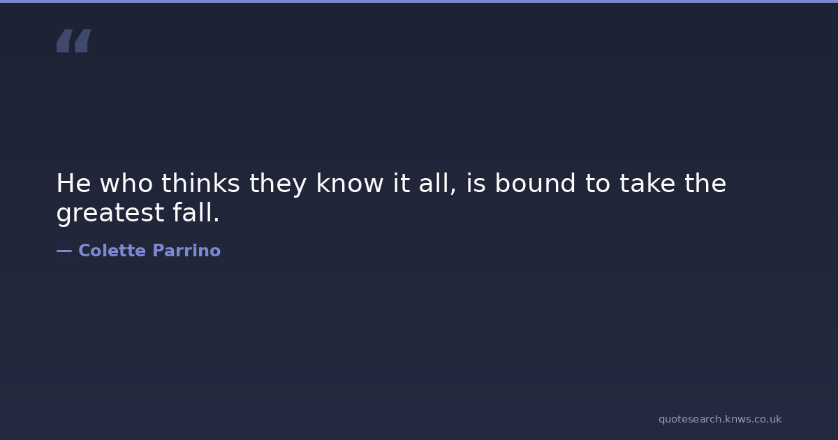 He who thinks they know it all, is bound to take the greatest fall.