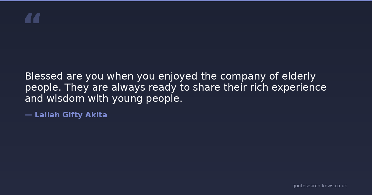 Blessed are you when you enjoyed the company of elderly people. They are always ready to share their rich experience and wisdom with young people.