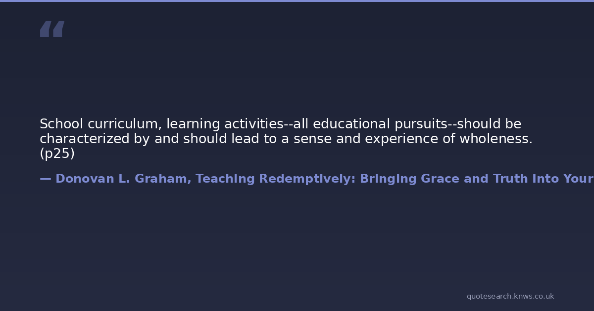 School curriculum, learning activities--all educational pursuits--should be characterized by and should lead to a sense and experience of wholeness. (p25)