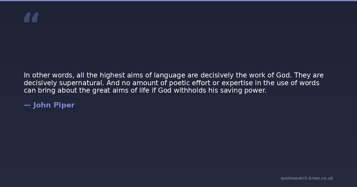 In other words, all the highest aims of language are decisively the work of God. They are decisively supernatural. And no amount of poetic effort or expertise in the use of words can bring about the great aims of life if God withholds his saving power.