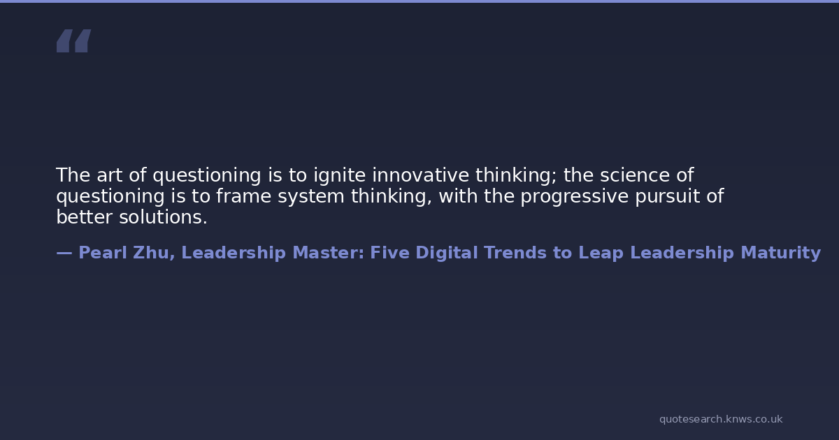 The art of questioning is to ignite innovative thinking; the science of questioning is to frame system thinking, with the progressive pursuit of better solutions.