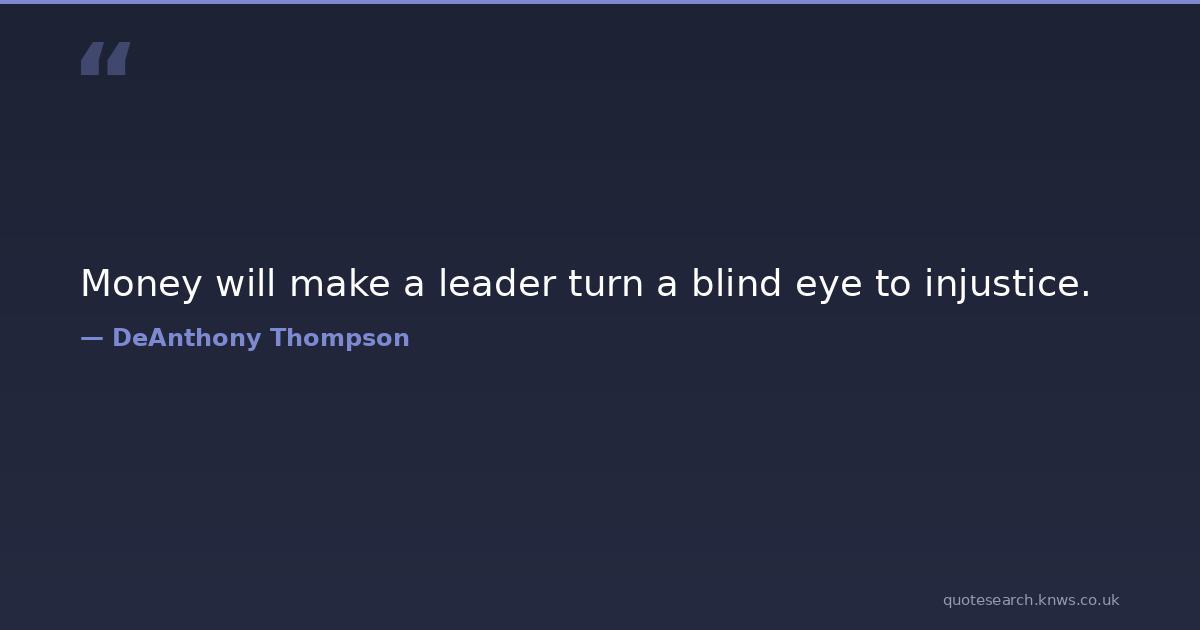 Money will make a leader turn a blind eye to injustice. injustice leaders leadership Download Image Share on X Share on Facebook Copy Link