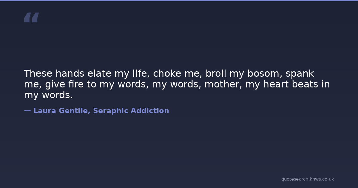 These hands elate my life, choke me, broil my bosom, spank me, give fire to my words, my words, mother, my heart beats in my words.