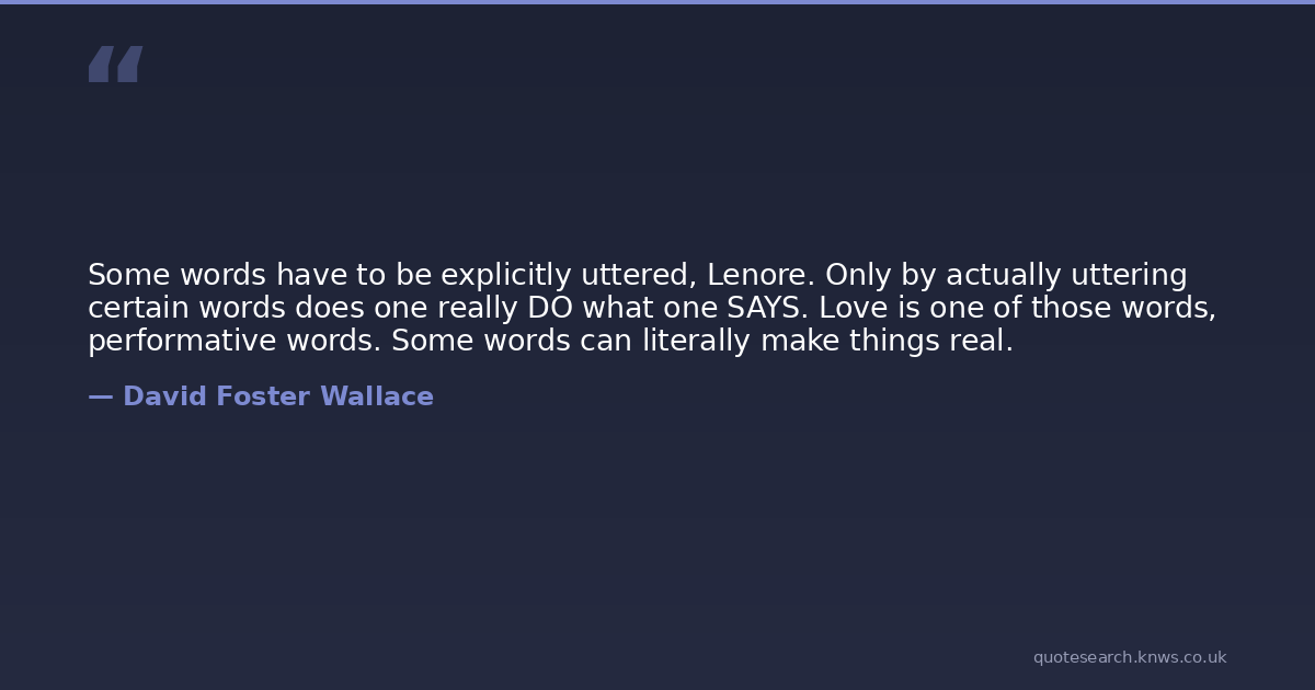 Some words have to be explicitly uttered, Lenore. Only by actually uttering certain words does one really DO what one SAYS. Love is one of those words, performative words. Some words can literally make things real.