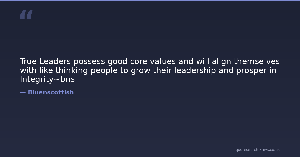 True Leaders possess good core values and will align themselves with like thinking people to grow their leadership and prosper in Integrity~bns