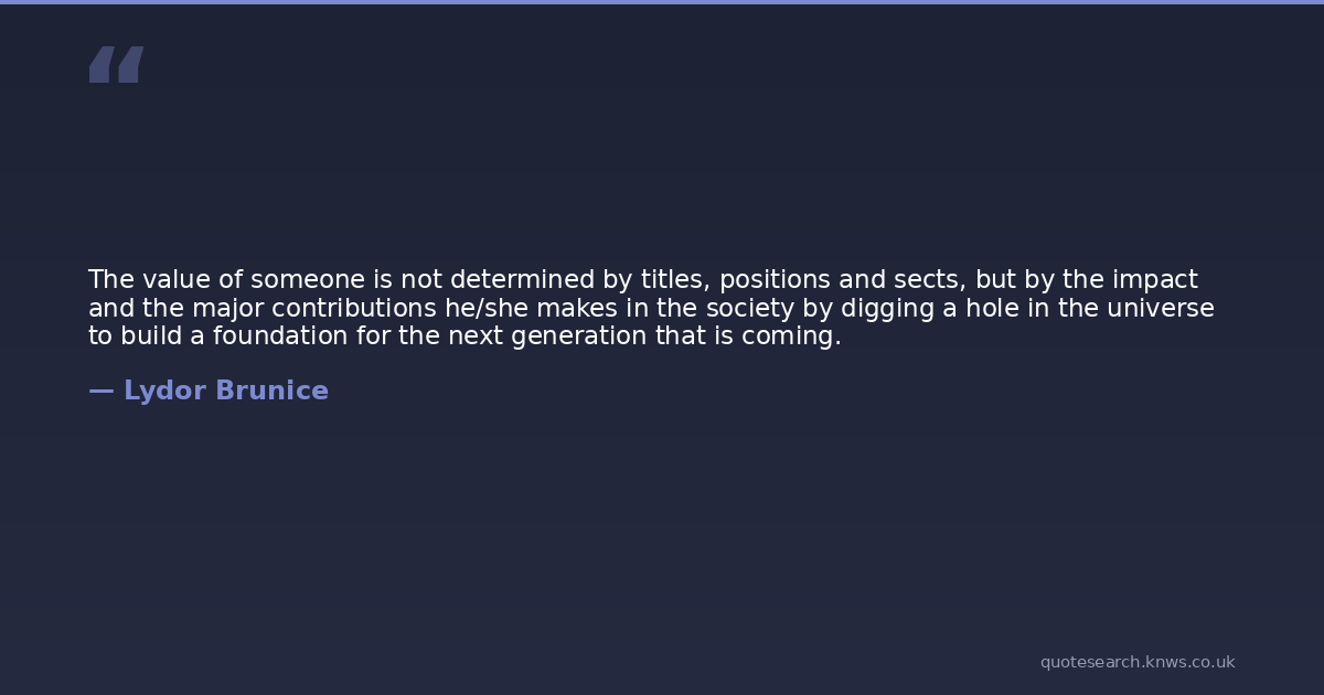 The value of someone is not determined by titles, positions and sects, but by the impact and the major contributions he/she makes in the society by digging a hole in the universe to build a foundation for the next generation that is coming.
