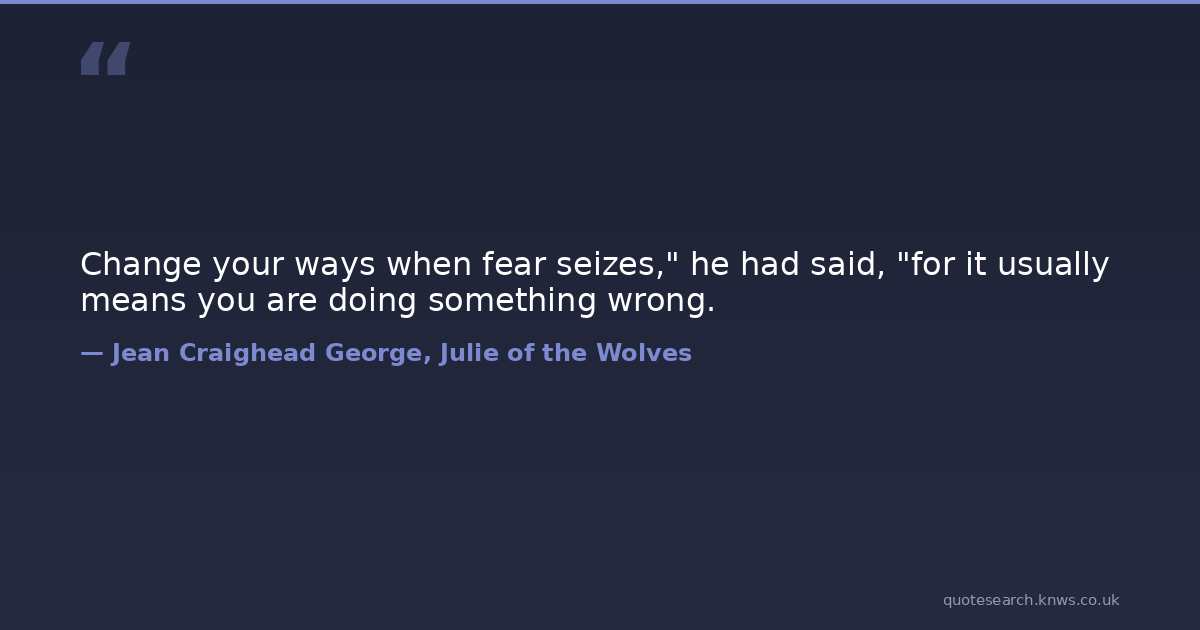 Change your ways when fear seizes," he had said, "for it usually means you are doing something wrong. change fear Download Image Share on X Share on Facebook Copy Link