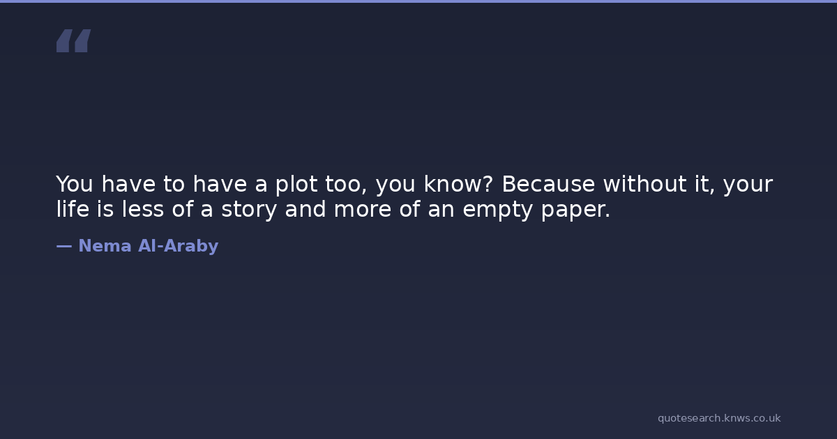 You have to have a plot too, you know? Because without it, your life is less of a story and more of an empty paper.