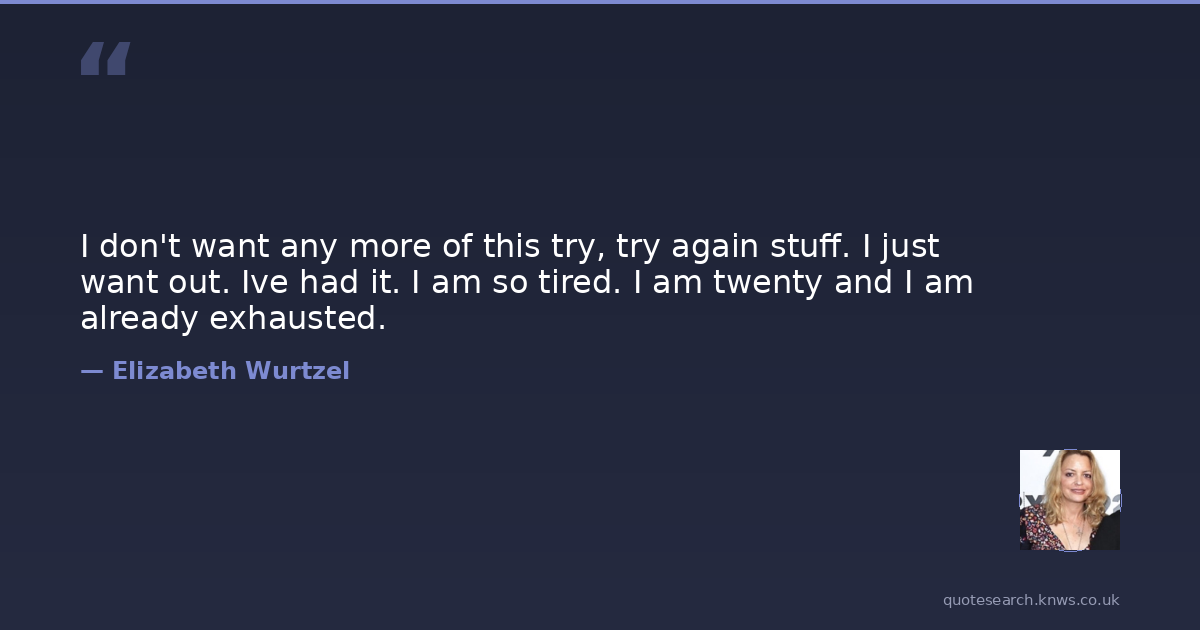 I don't want any more of this try, try again stuff. I just want out. Ive had it. I am so tired. I am twenty and I am already exhausted.