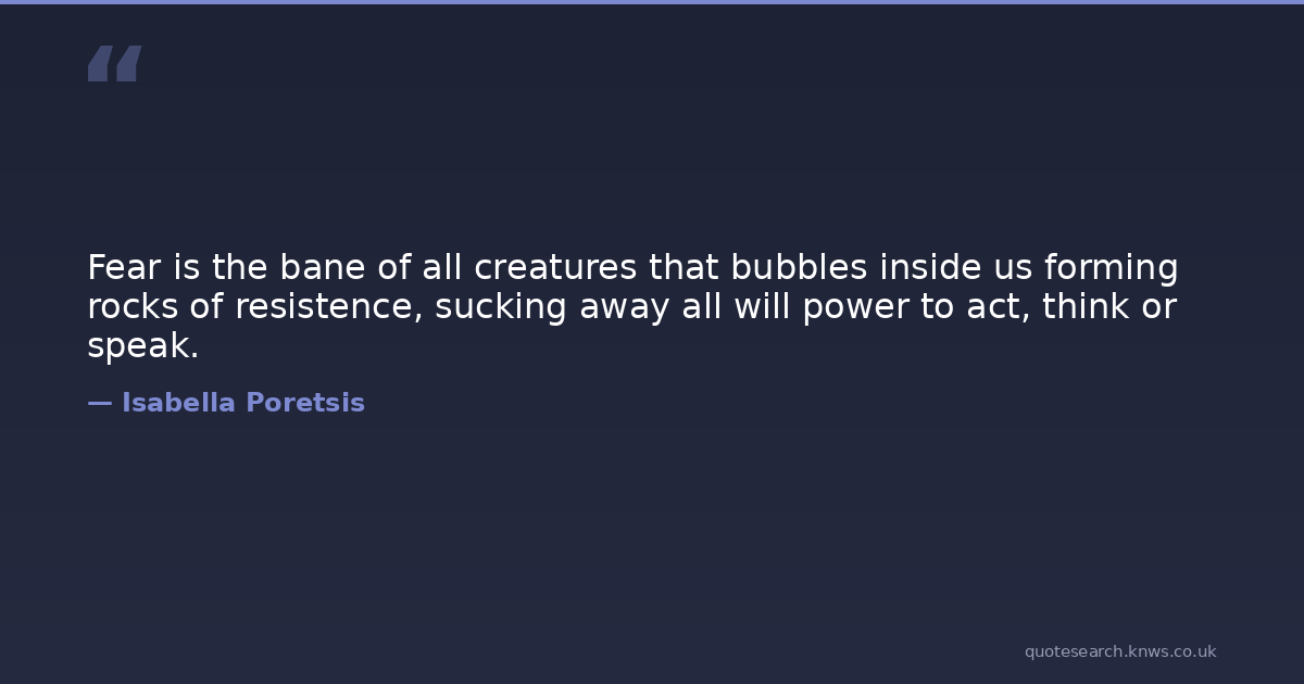 Fear is the bane of all creatures that bubbles inside us forming rocks of resistence, sucking away all will power to act, think or speak.