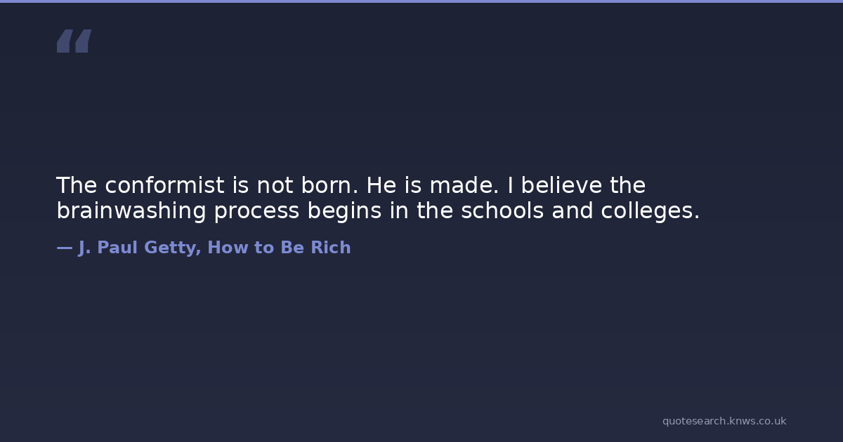 The conformist is not born. He is made. I believe the brainwashing process begins in the schools and colleges.