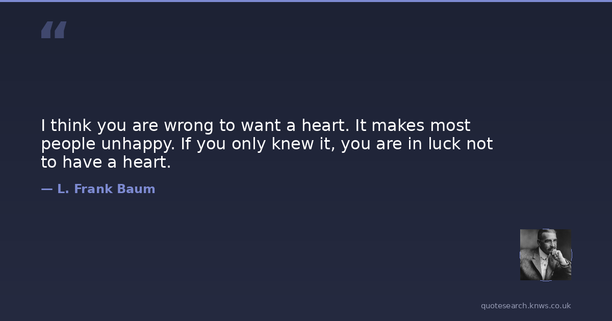I think you are wrong to want a heart. It makes most people unhappy. If you only knew it, you are in luck not to have a heart.