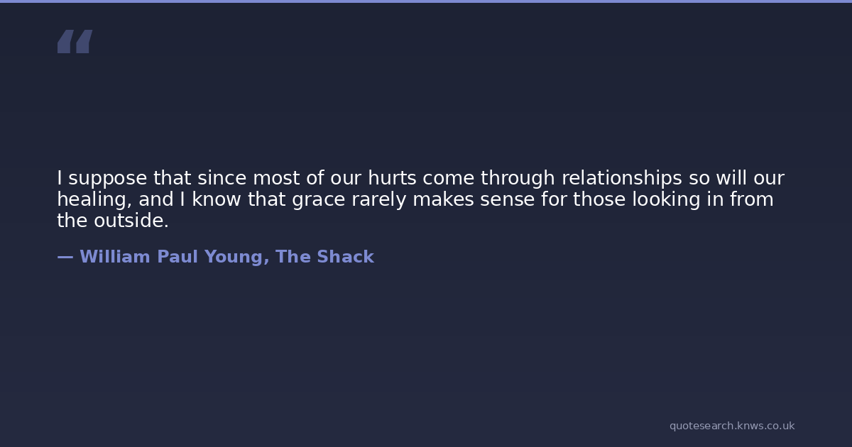 I suppose that since most of our hurts come through relationships so will our healing, and I know that grace rarely makes sense for those looking in from the outside.