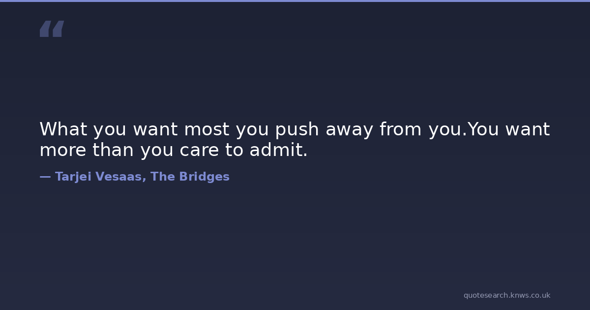 What you want most you push away from you.You want more than you care to admit. relationships Download Image Share on X Share on Facebook Copy Link