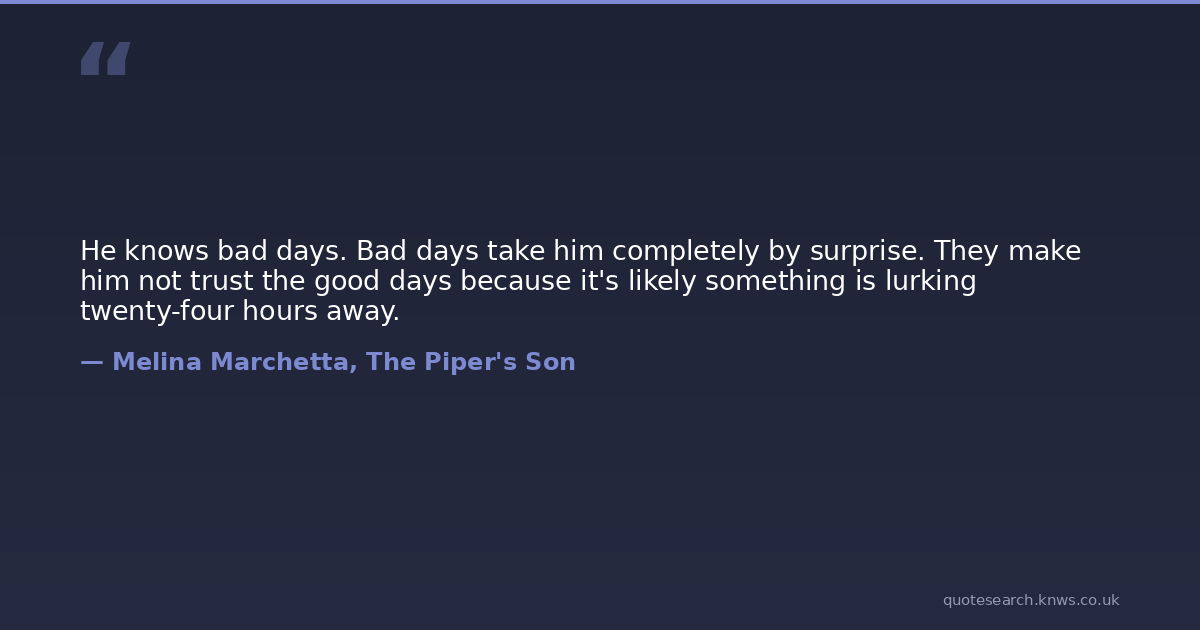 He knows bad days. Bad days take him completely by surprise. They make him not trust the good days because it's likely something is lurking twenty-four hours away.