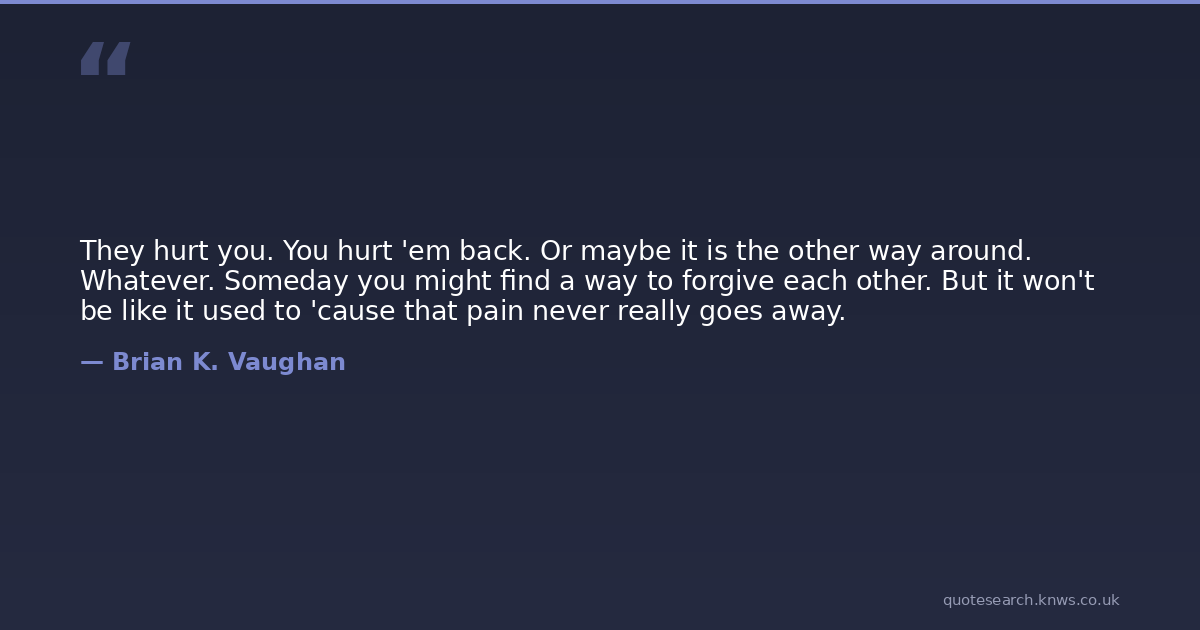 They hurt you. You hurt 'em back. Or maybe it is the other way around. Whatever. Someday you might find a way to forgive each other. But it won't be like it used to 'cause that pain never really goes away.