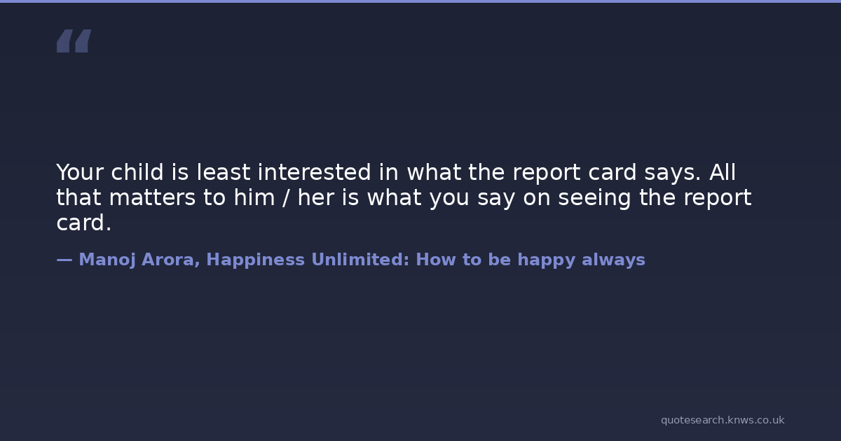 Your child is least interested in what the report card says. All that matters to him / her is what you say on seeing the report card.