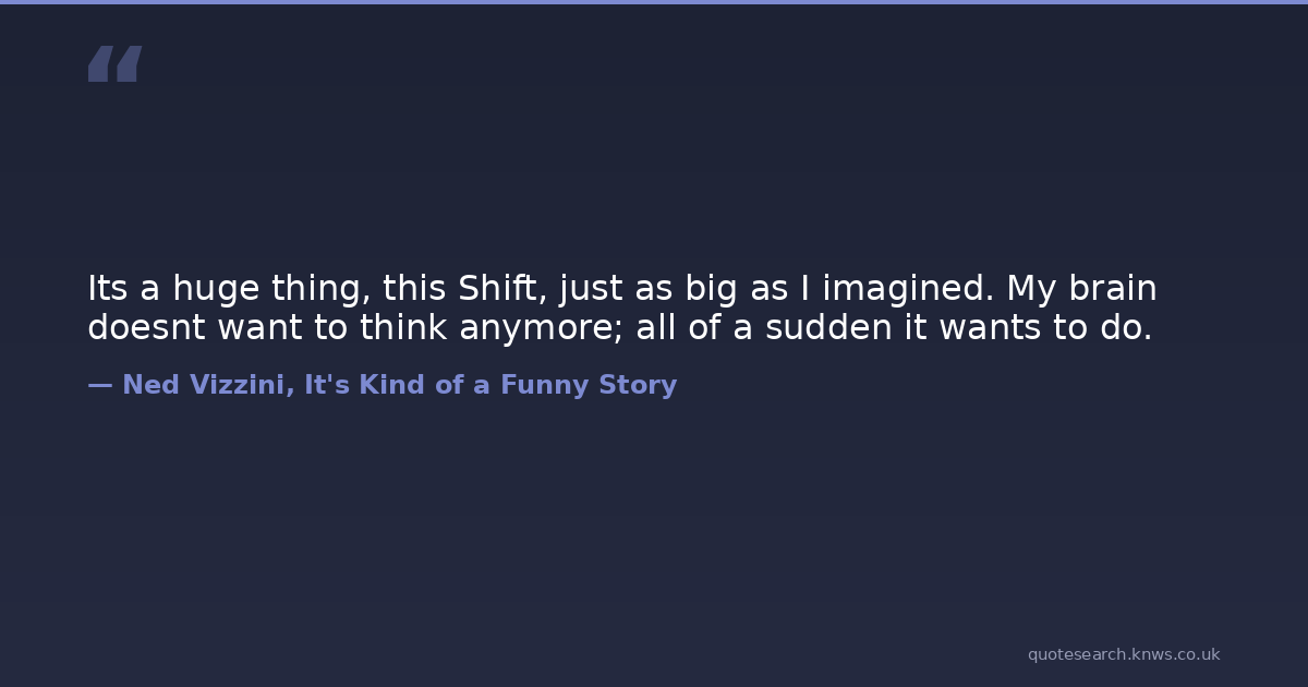 Its a huge thing, this Shift, just as big as I imagined. My brain doesnt want to think anymore; all of a sudden it wants to do.