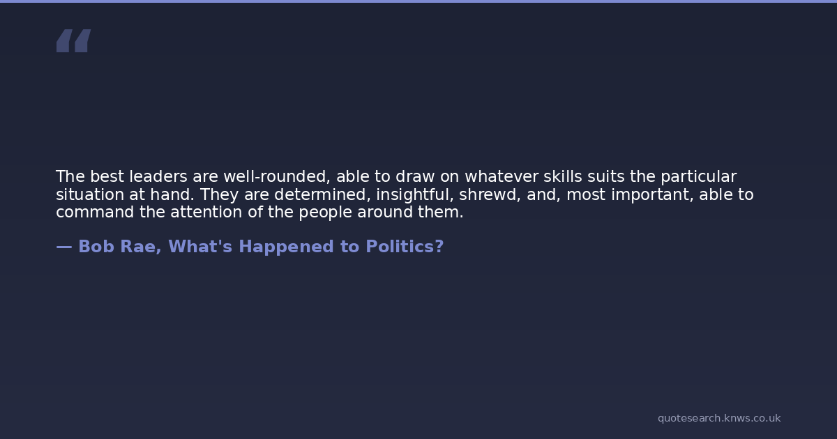 The best leaders are well-rounded, able to draw on whatever skills suits the particular situation at hand. They are determined, insightful, shrewd, and, most important, able to command the attention of the people around them.