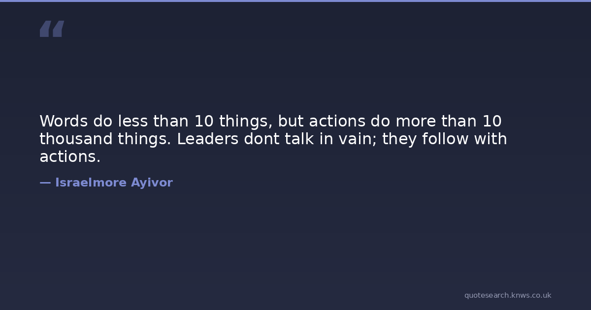 Words do less than 10 things, but actions do more than 10 thousand things. Leaders dont talk in vain; they follow with actions.