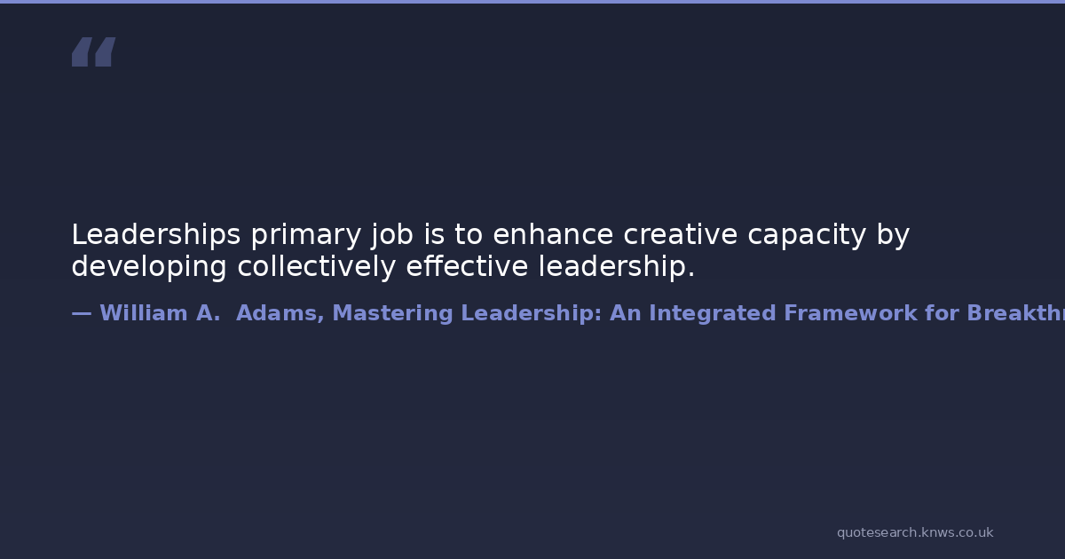 Leaderships primary job is to enhance creative capacity by developing collectively effective leadership.