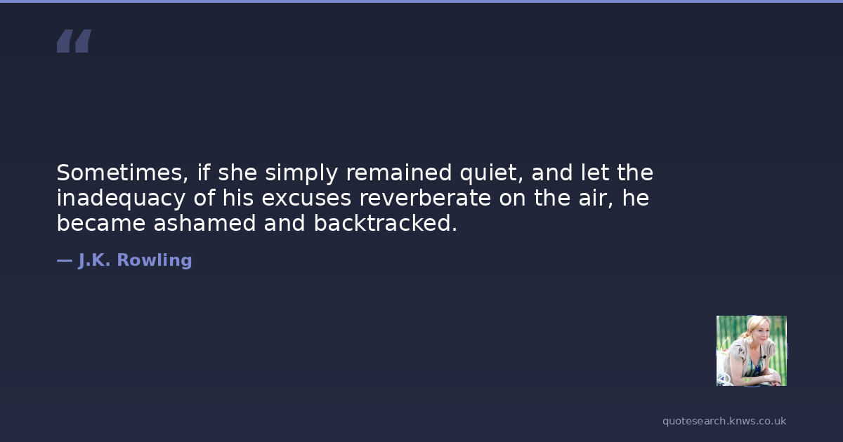 Sometimes, if she simply remained quiet, and let the inadequacy of his excuses reverberate on the air, he became ashamed and backtracked.