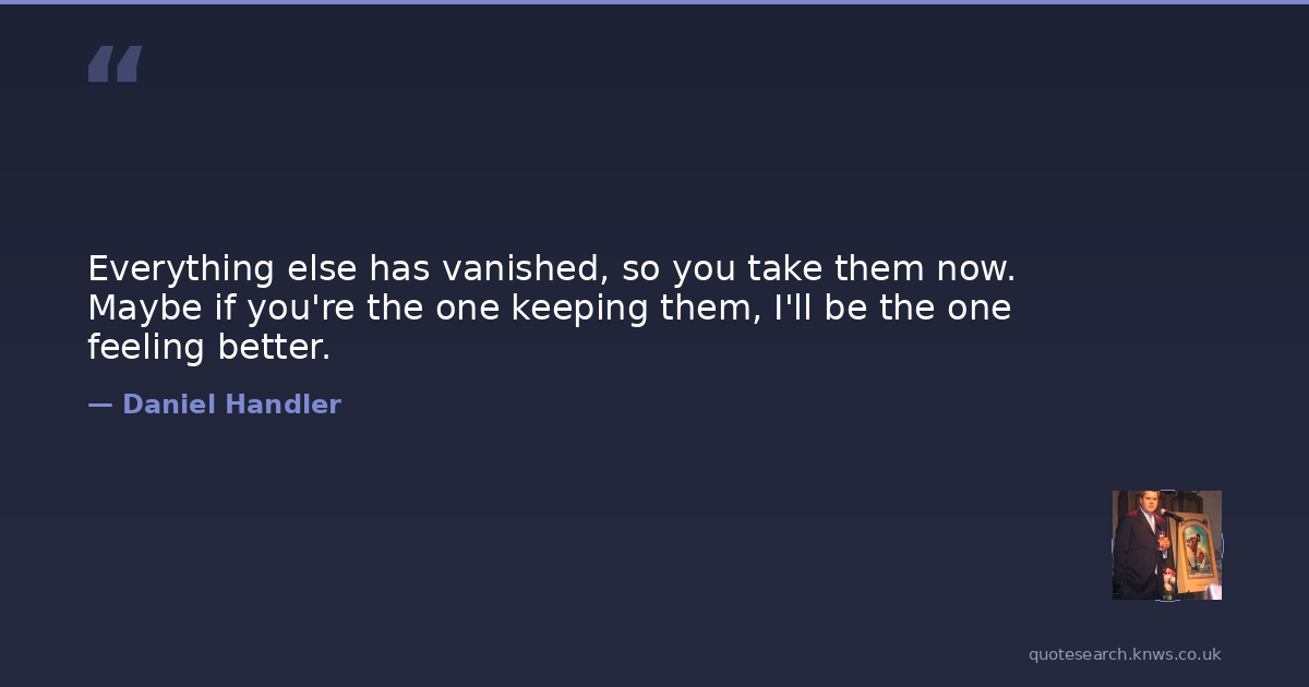 Everything else has vanished, so you take them now. Maybe if you're the one keeping them, I'll be the one feeling better.