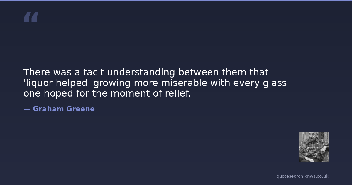 There was a tacit understanding between them that 'liquor helped' growing more miserable with every glass one hoped for the moment of relief.