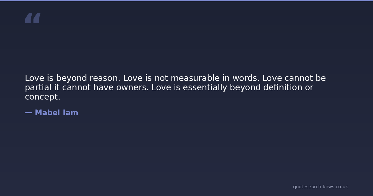 Love is beyond reason. Love is not measurable in words. Love cannot be partial it cannot have owners. Love is essentially beyond definition or concept.