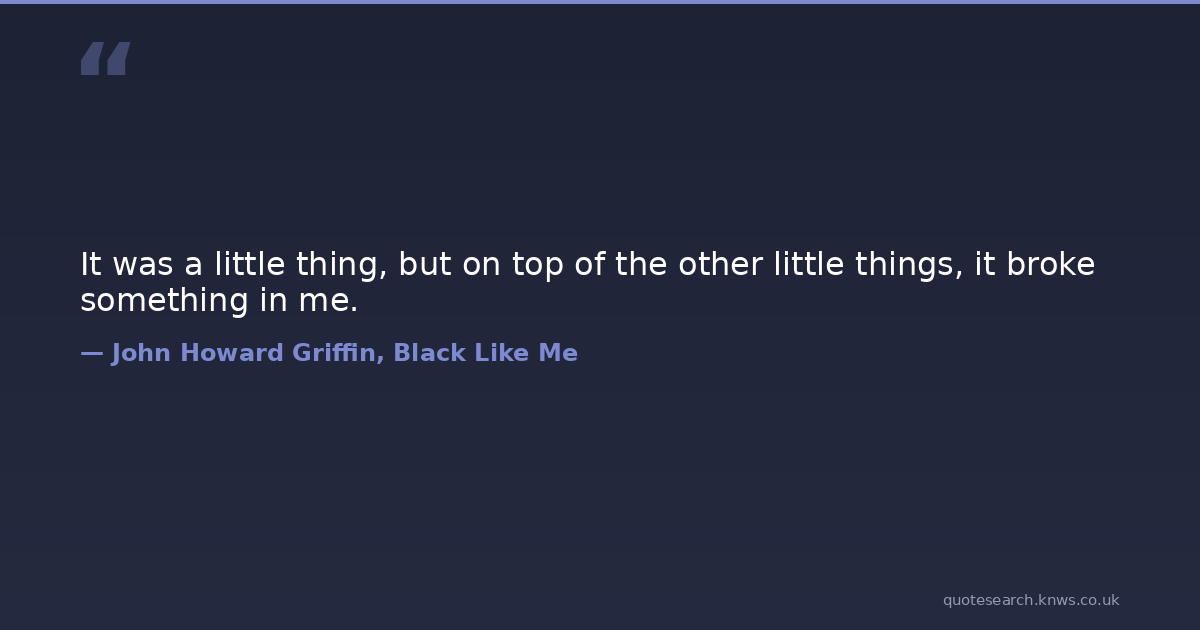 It was a little thing, but on top of the other little things, it broke something in me.