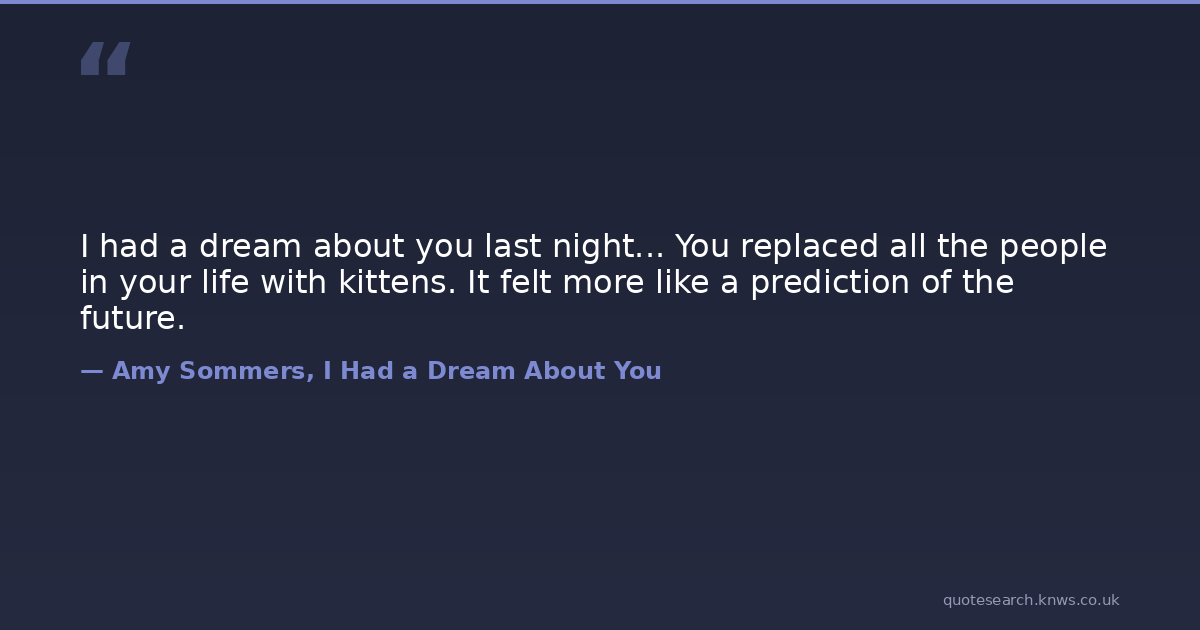 I had a dream about you last night... You replaced all the people in your life with kittens. It felt more like a prediction of the future.
