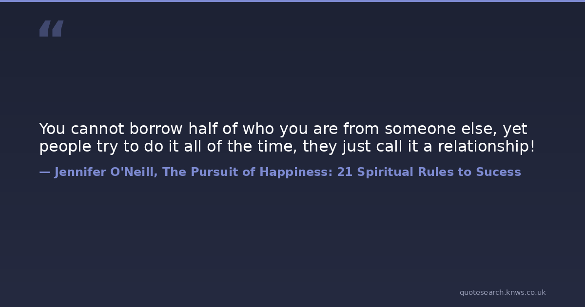 You cannot borrow half of who you are from someone else, yet people try to do it all of the time, they just call it a relationship!