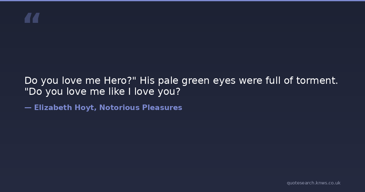 Do you love me Hero?" His pale green eyes were full of torment. "Do you love me like I love you?