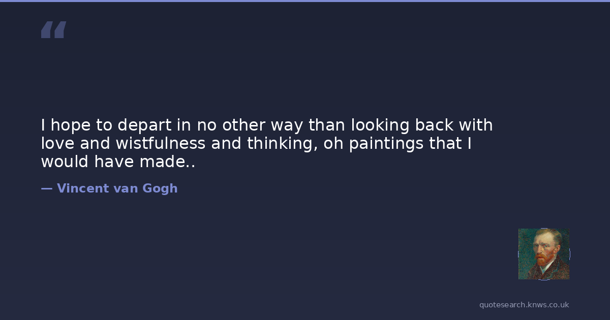 I hope to depart in no other way than looking back with love and wistfulness and thinking, oh paintings that I would have made..