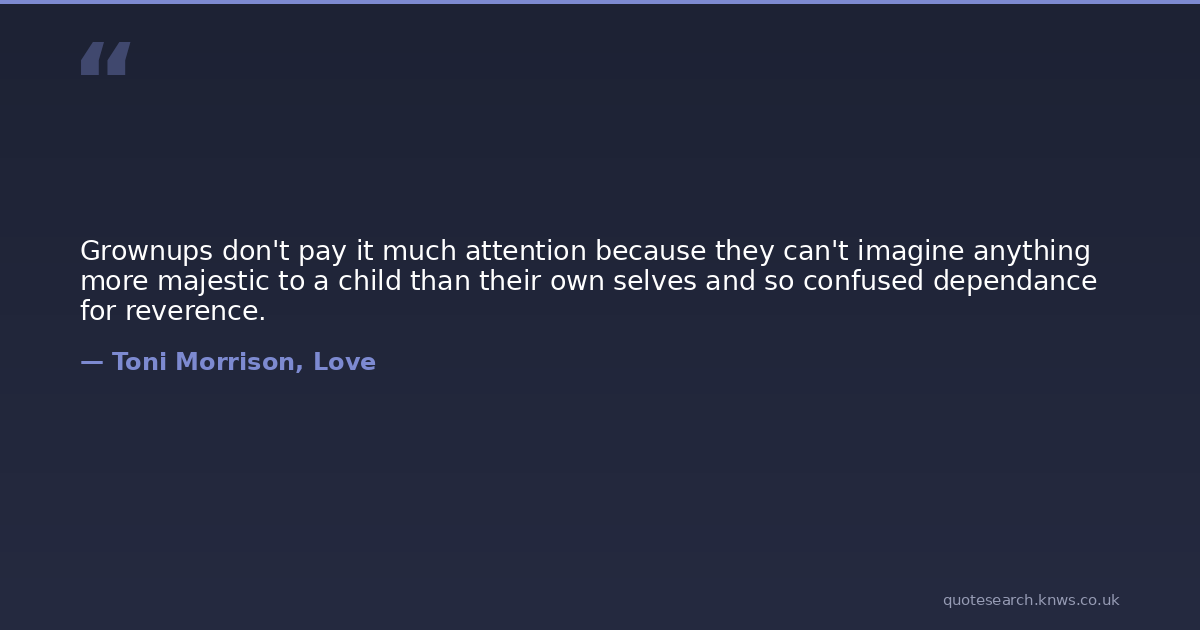 Grownups don't pay it much attention because they can't imagine anything more majestic to a child than their own selves and so confused dependance for reverence.