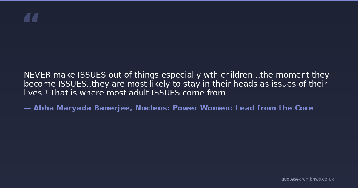 NEVER make ISSUES out of things especially wth children...the moment they become ISSUES..they are most likely to stay in their heads as issues of their lives ! That is where most adult ISSUES come from.....
