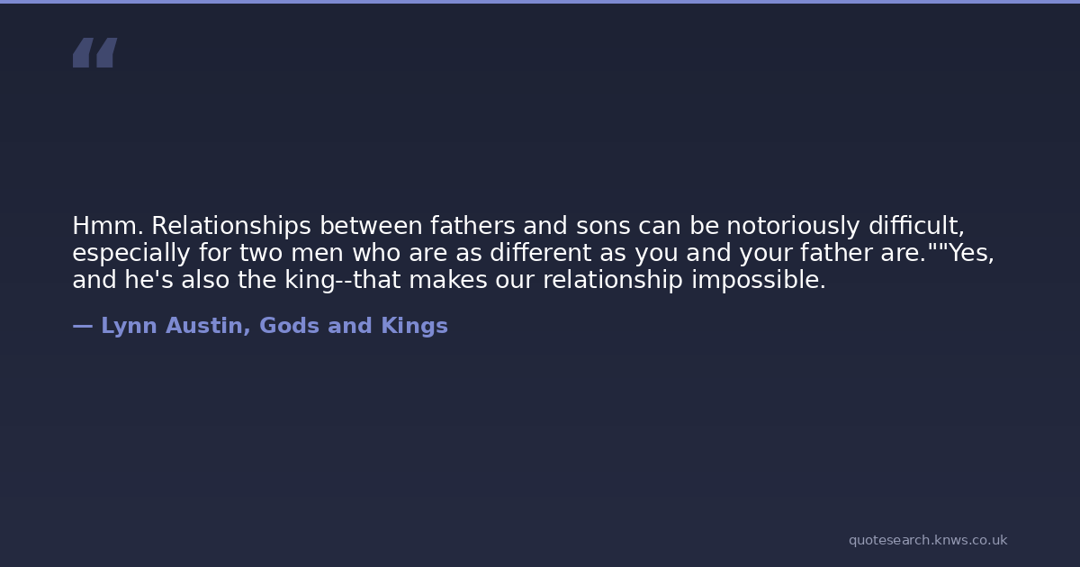 Hmm. Relationships between fathers and sons can be notoriously difficult, especially for two men who are as different as you and your father are.""Yes, and he's also the king--that makes our relationship impossible.