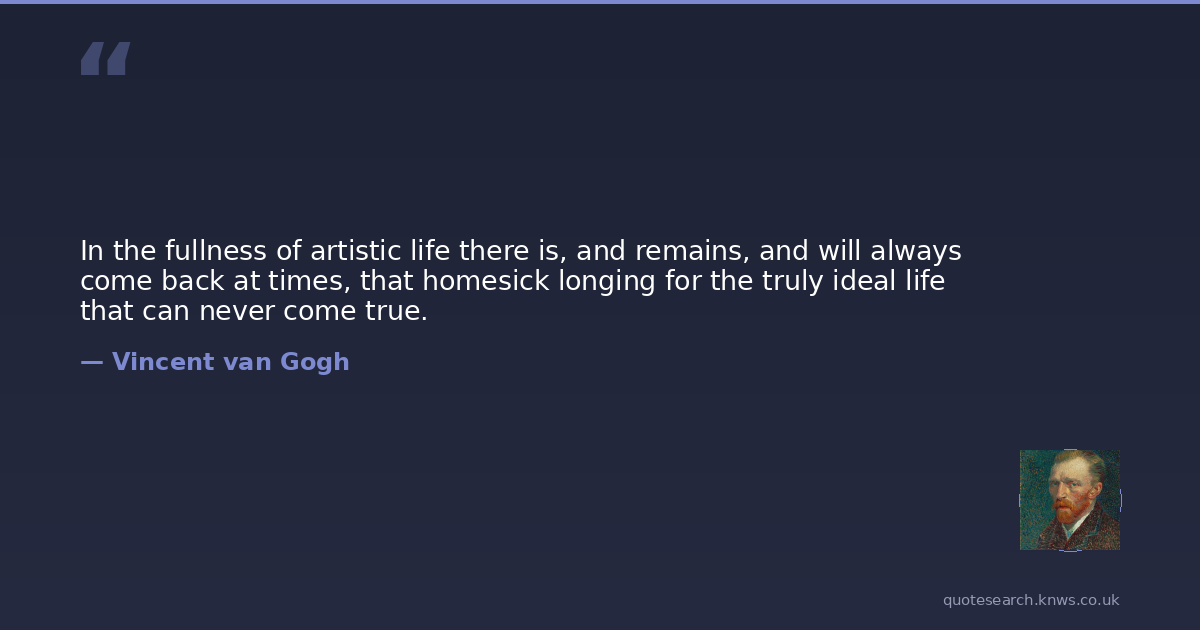 In the fullness of artistic life there is, and remains, and will always come back at times, that homesick longing for the truly ideal life that can never come true.