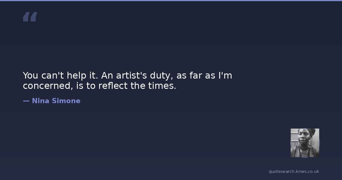You can't help it. An artist's duty, as far as I'm concerned, is to reflect the times.