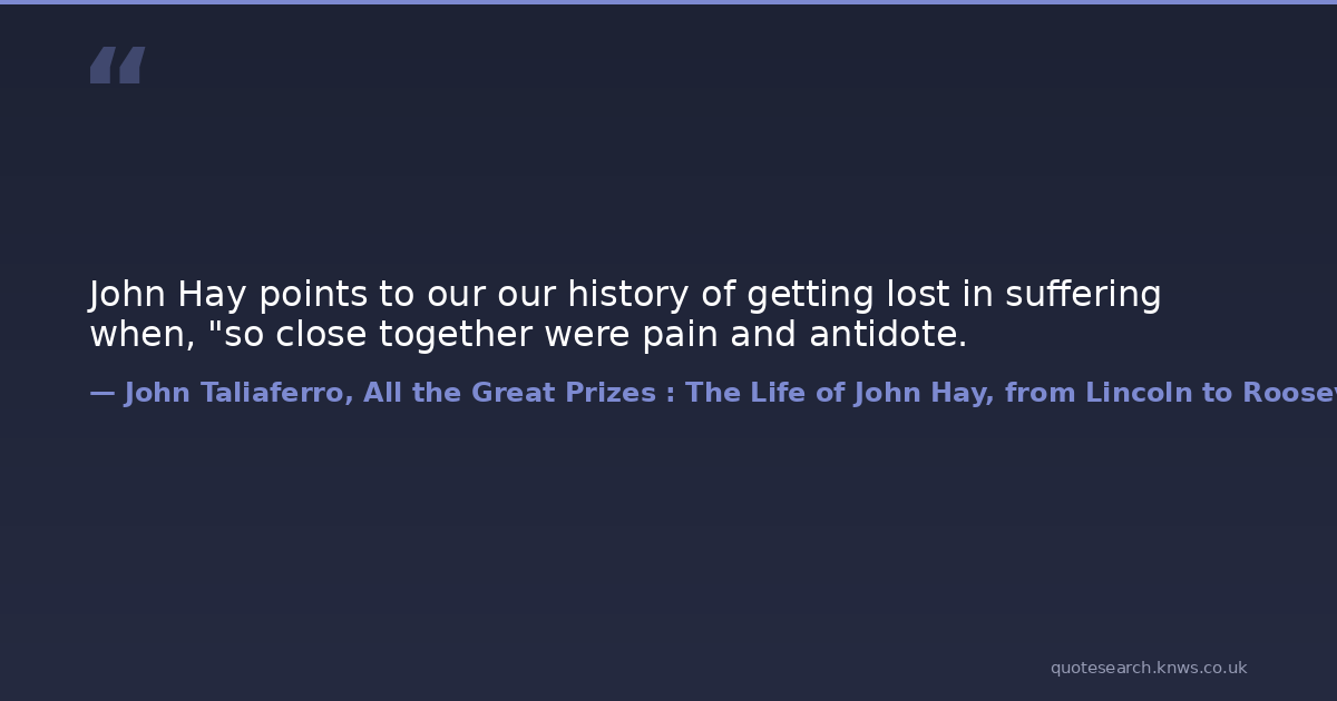 John Hay points to our our history of getting lost in suffering when, "so close together were pain and antidote.