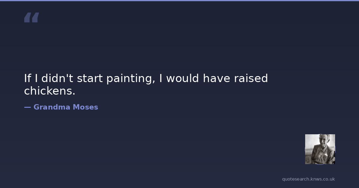 Grandma Moses was a 19th-century American painter. Anna Mary Robertson Moses, popularly known as Grandma Moses, was an American folk artist. She began painting in earnest at the age of 78 and is a prominent example of a newly successful art career at an advanced age. Read more on Wikipedia →