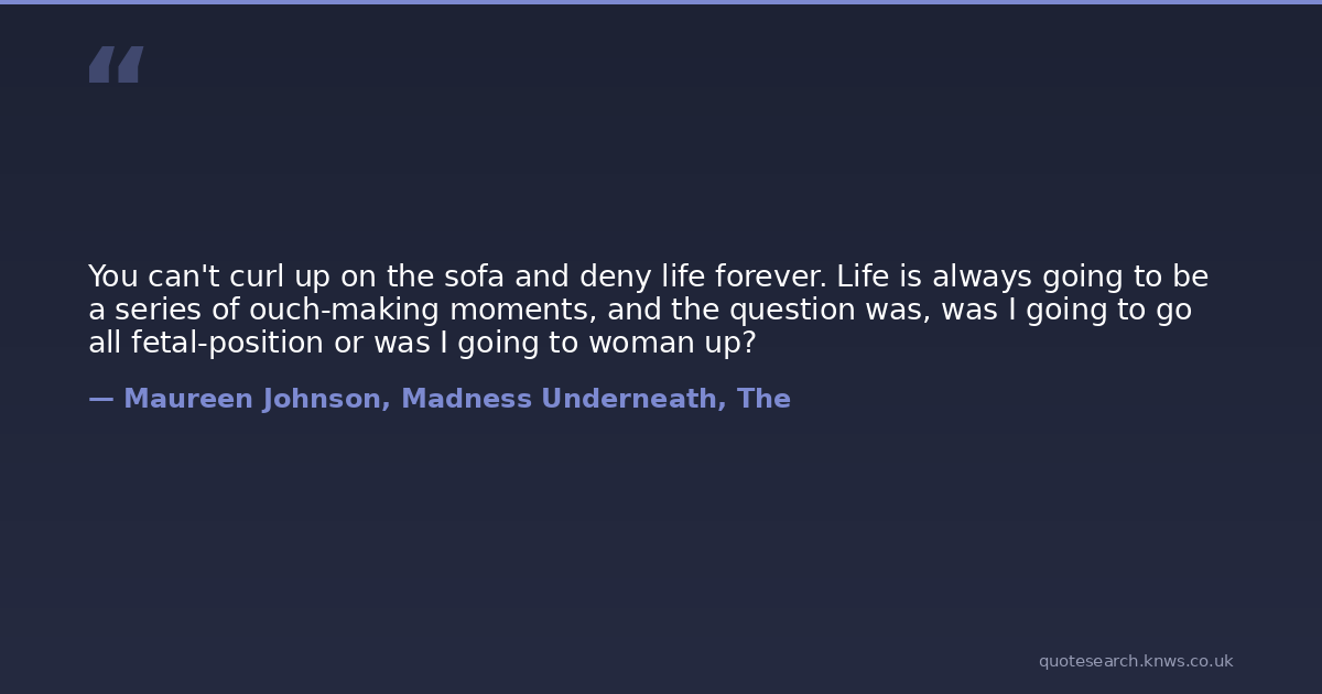 You can't curl up on the sofa and deny life forever. Life is always going to be a series of ouch-making moments, and the question was, was I going to go all fetal-position or was I going to woman up?