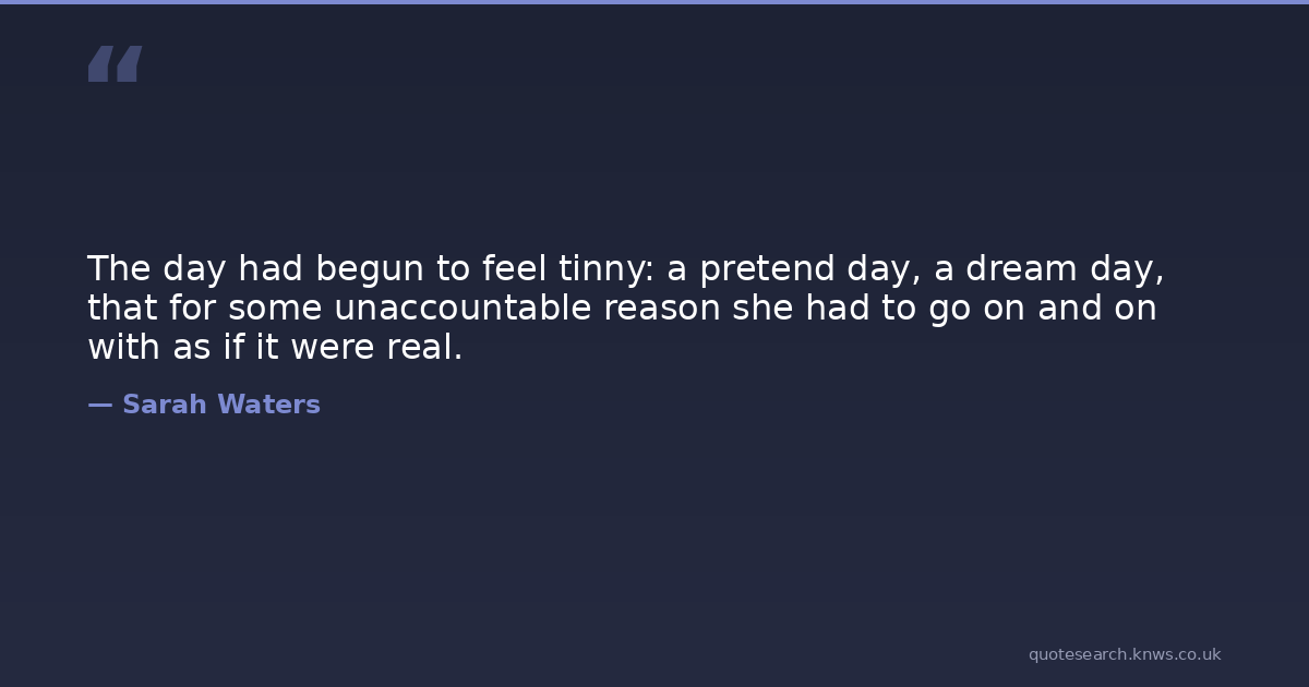 The day had begun to feel tinny: a pretend day, a dream day, that for some unaccountable reason she had to go on and on with as if it were real.
