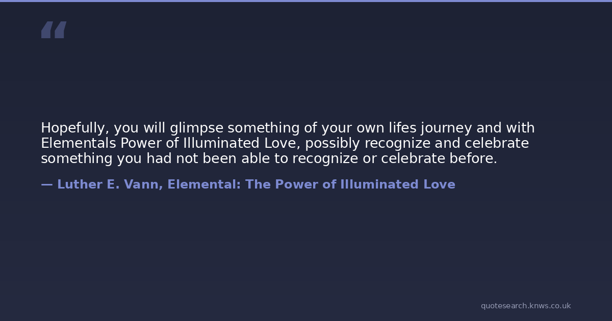 Hopefully, you will glimpse something of your own lifes journey and with Elementals Power of Illuminated Love, possibly recognize and celebrate something you had not been able to recognize or celebrate before.