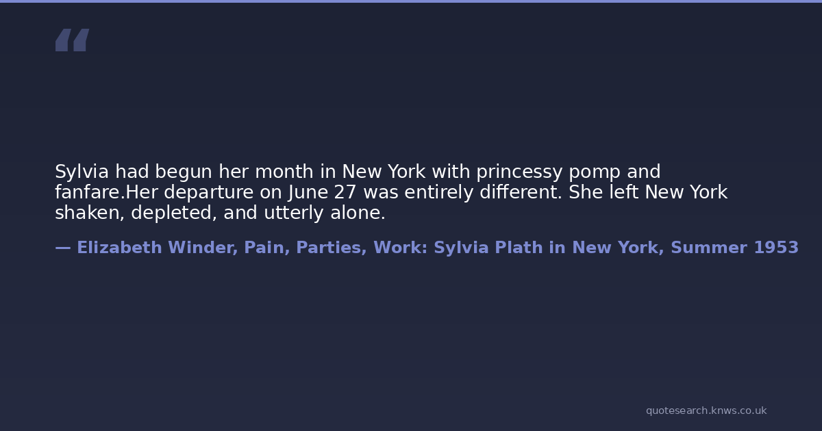 Sylvia had begun her month in New York with princessy pomp and fanfare.Her departure on June 27 was entirely different. She left New York shaken, depleted, and utterly alone.