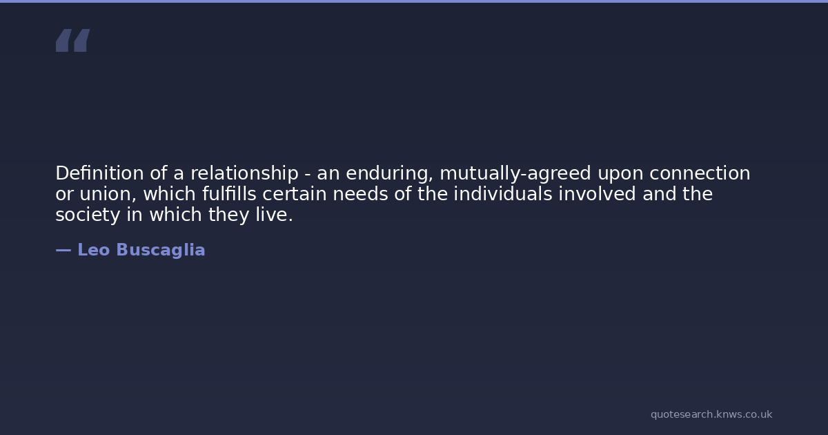 Definition of a relationship - an enduring, mutually-agreed upon connection or union, which fulfills certain needs of the individuals involved and the society in which they live.