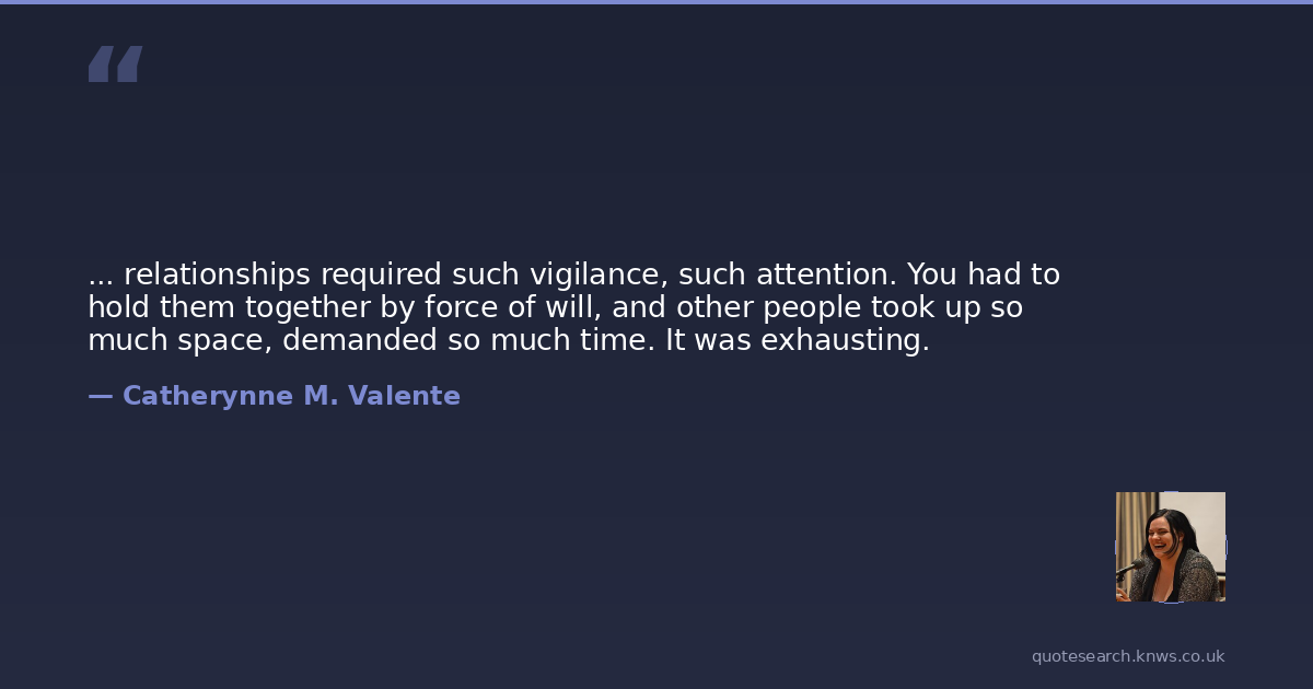 ... relationships required such vigilance, such attention. You had to hold them together by force of will, and other people took up so much space, demanded so much time. It was exhausting.